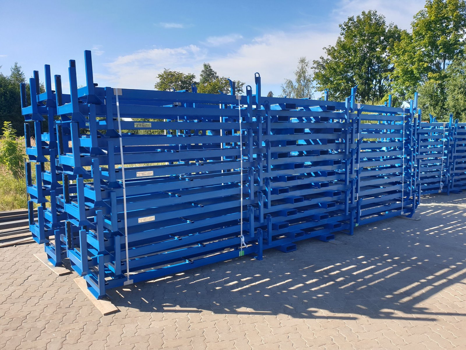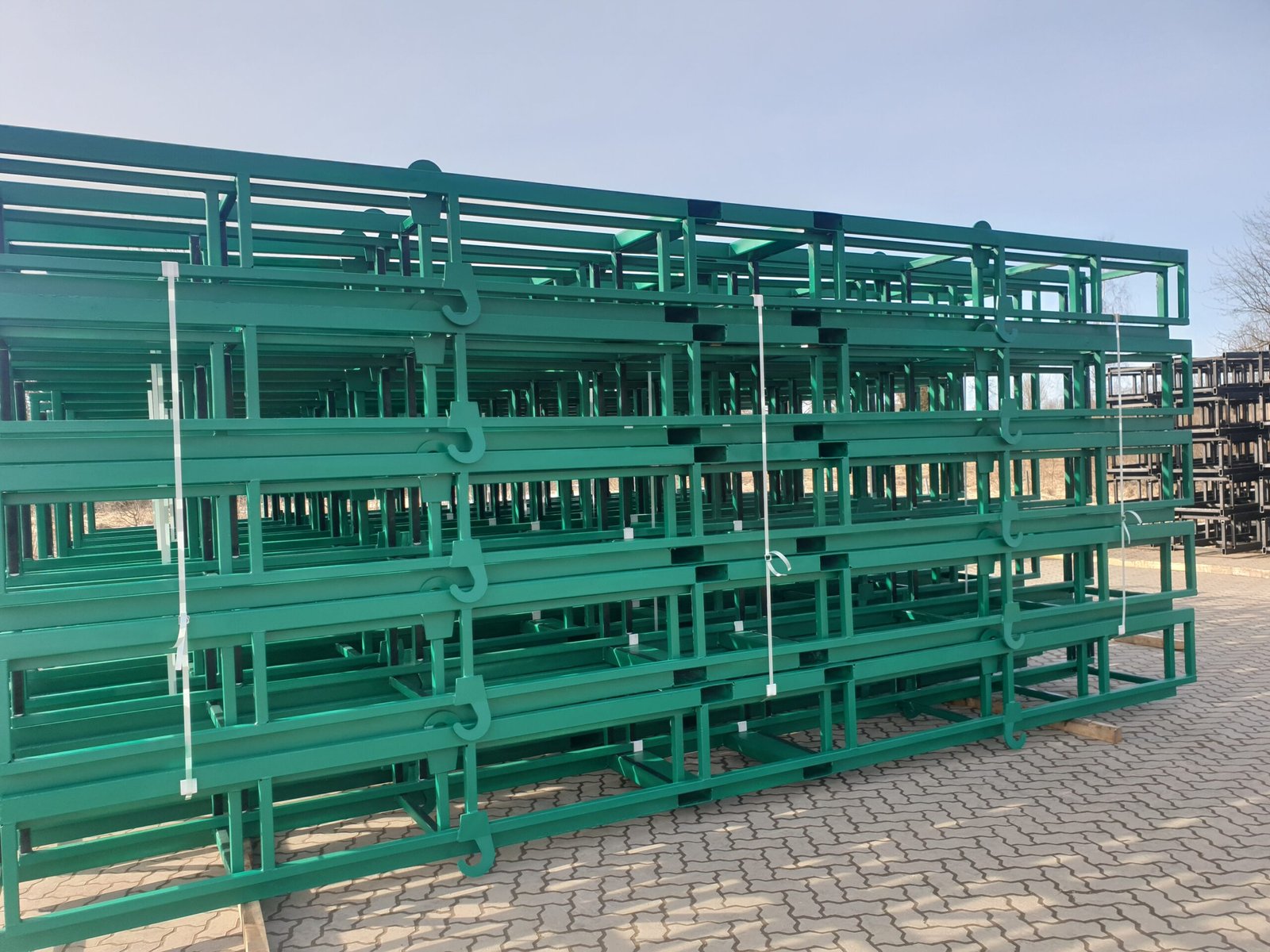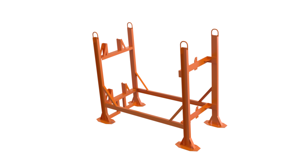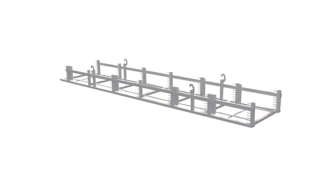 Engineered steel stillage for aluminum extrusions with integrated surface protection and stackable design. Built for durability, safe handling, and optimized multi-cycle transport performance.