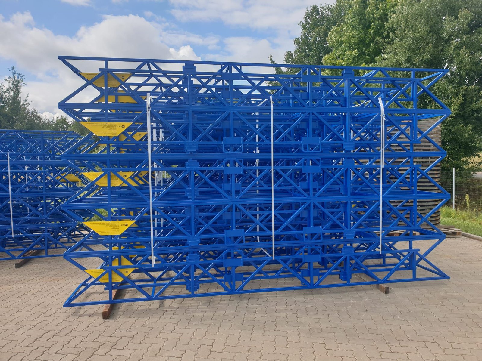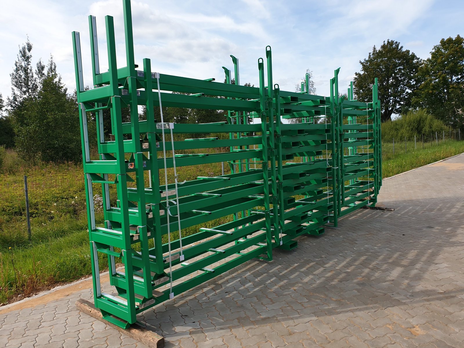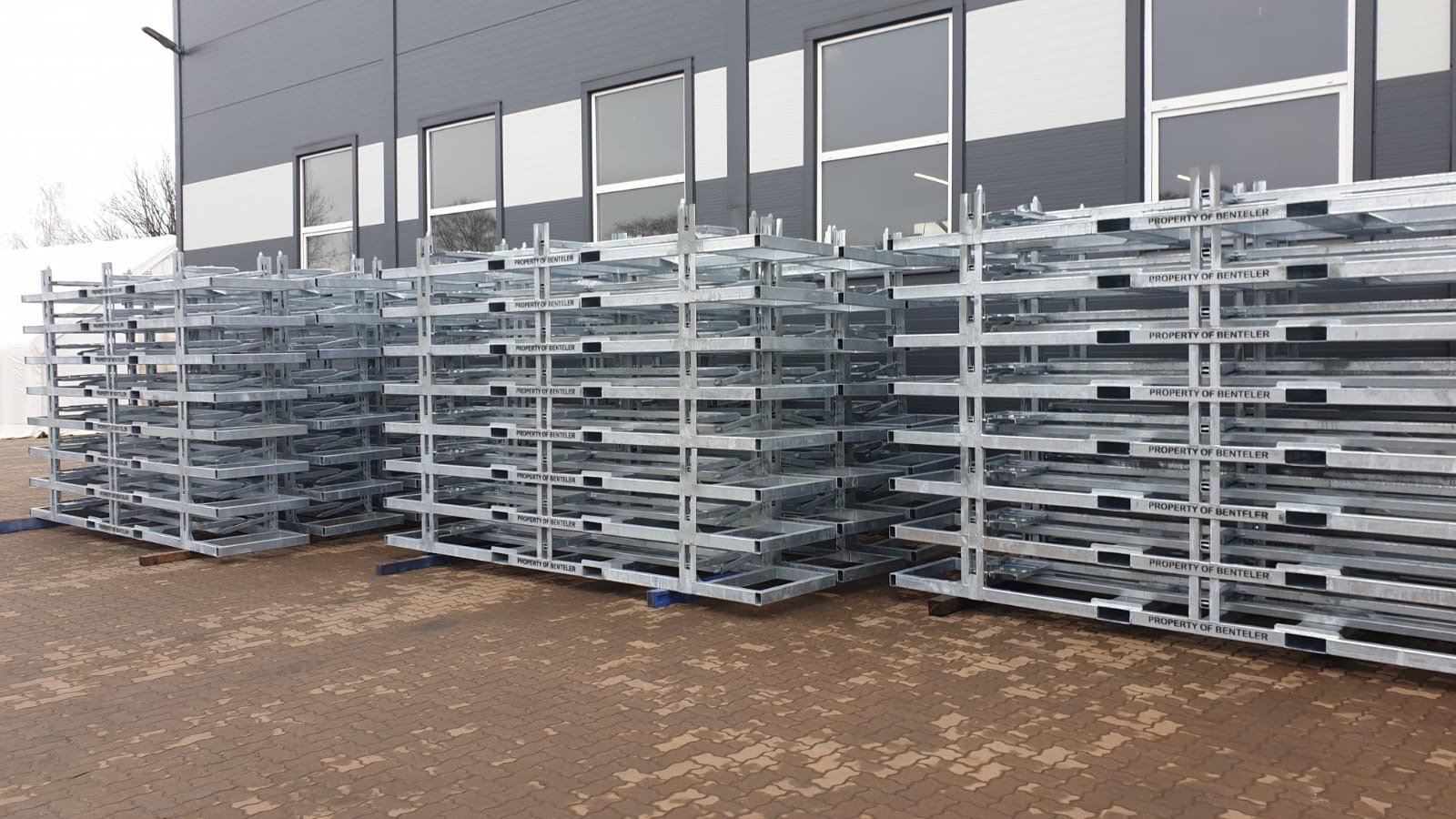 Engineered steel stillage for aluminum extrusions with integrated surface protection and stackable design. Built for durability, safe handling, and optimized multi-cycle transport performance.